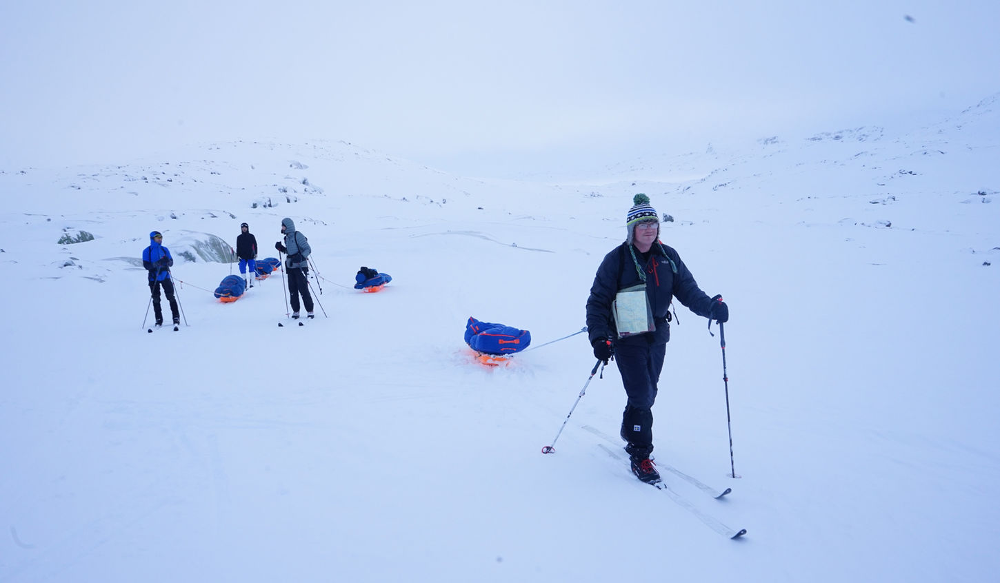This is an prolonged ski expedition through "Skarvheimen" and "Hardangervidda" nationalpark. We will be skiing on “Nordic BC Skis”, and be outside for 13 days. Therefore we are gonna be sleeping in specialized winter tents, and drag all our equipment along in pulks for the whole duration of the ski tour.